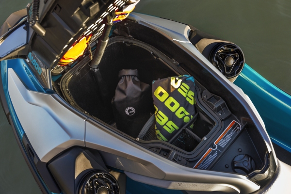 Die GTX Plattform bietet durchdachten Stauraum für jedes Abenteuer. Das großzügige vordere Staufach mit 100 L Volumen ist direkt über den Lenker zugänglich – für schnellen und bequemen Zugriff. Ob Trinkflasche, Sonnencreme, Kleidung oder persönliche Gegenstände. Hier findet alles Platz, was man auf dem Wasser griffbereit haben möchte. Ein durchdachtes Detail, das Komfort und Funktion perfekt vereint.