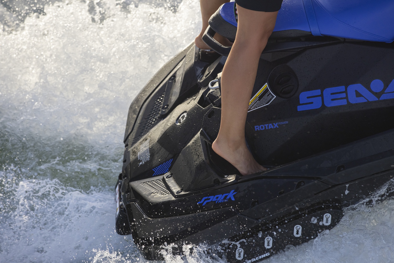 Der Spark Trixx 3up ist und bleibt eines der beliebtesten Fahrzeuge mit einem riesen Spaß Faktor. Erneuerungen für das Jahr 2024 waren neue Farben, ein größeres Handschuhfach inklusive wasserdichtem Handyfach sowie ein 11,4 cm großes Display und der Trixx Modus. Der Spark Trixx 3up ist für Singles als auch für Familien ein super Option und was Preis- Leistung angeht, unschlagbar. Das Trixx-Paket macht das Fahrzeug noch vielseitiger und benutzerfreundlicher. Es bietet einen Lenker mit Höhenverstellung, das VTS (Variables Trimmsystem) was dabei hilft, die Handhabung auf dem Wasser zu verbessern - vorallem bei Sprüngen und Tricks. Der erweiterte Einstellbereich des VTS gibt noch mehr Spielraum die optimale Leistung zu erzielen. Auch die Stufenkeile geben den nötigen Grip, die das Fahrzeug Handling ebenfalls verbessern. Die auffälligen Farben der Spark Trixx Modelle sind ein Statement, die die Vielseitigkeit der Fahrzeuge unterstreichen.Mit flexiblem Original-Zubehör kann der Spark auf die individuellen Bedürfnisse angepasst werden. Da der Spark Trixx 3up LinQ kompatibel sind, kann dank des LinQ Schnellmontage-Systems problemlos Zubehör befestigt werden. Ebenso kann hier auch optional das neue LinQ Lite integriert werden - eine neue und weitere Möglichkeit, für noch mehr individuelles Zubehör. Beispielsweise kann mit dem LinQ Lite System eine Actionkamera oder Fender montiert werden.