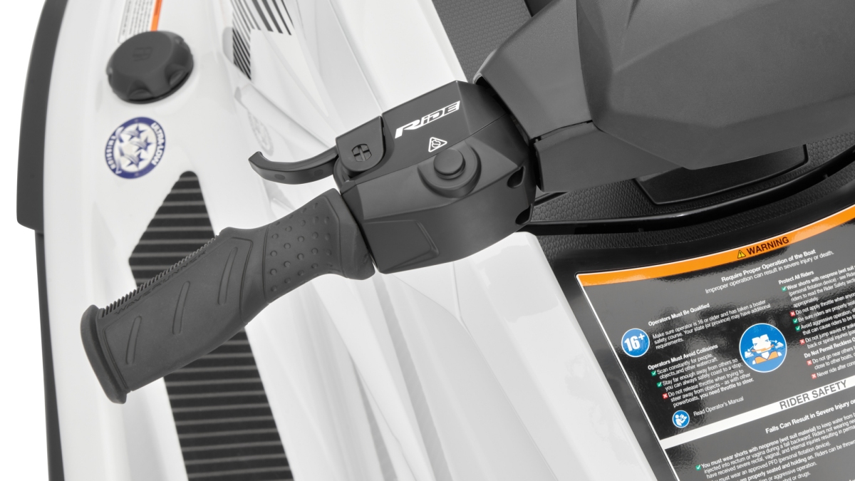 Das revolutiönäre RiDe-System verändert die Fahrfreude. Es macht das Manövrieren und Bremsen dank eigener Gasleitung kinderleicht. Ziehen Sie einfach den Gashebel am rechten Griff, um vorwärts zu fahren oder zu beschleunigen, und ziehen Sie den linken, um zu bremsen oder um Rückwärts zu fahren.