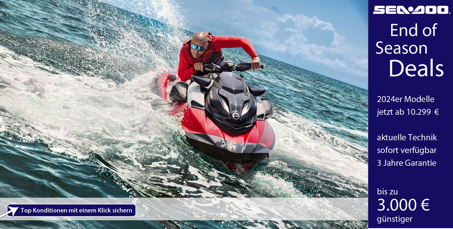 Im End of Season Deal bietet WT FunSports die letzten verfügbaren 2024er Sea-Doo Modelle zu nochmals attraktiveren Bedingungen an - nämlich massiv vergünstigt und mit einem extra dicken Paket an Garantie und sofortiger Verfügbarkeit.