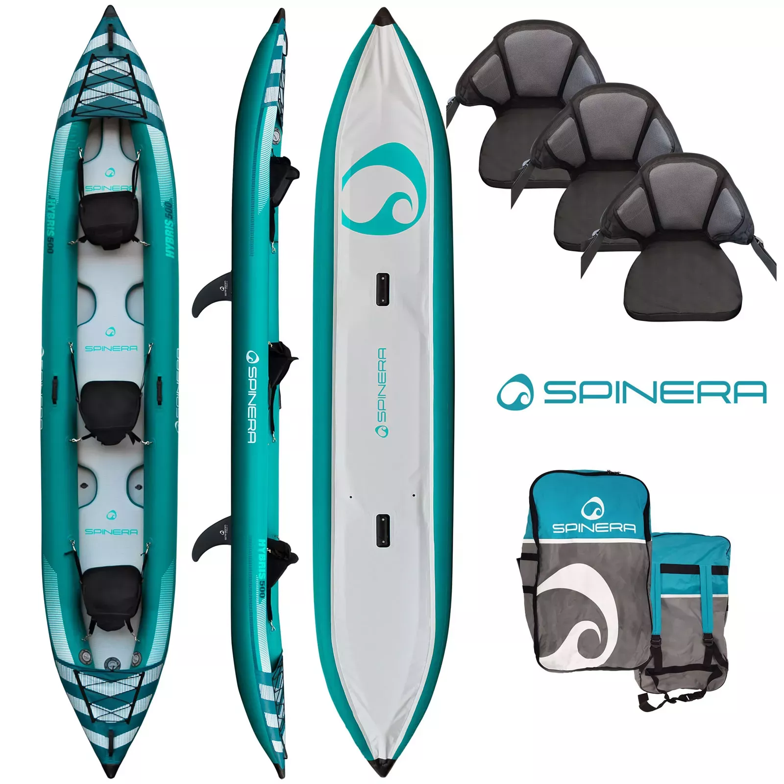 Dreisitzer aus der Allround- Tourenkajaklinie von Spinera. Mit diesem Tourer sind Sie bestens auf Flüssen, Seen und Meer ausgestattet. Das stabile Kajak hat optimale Gleiteigenschaften aufgrund des reibungslosen Tarpaulin Unterbodens. Das Hybris 500 eignet sich ideal auch für 2 Fahrer und kommt mit umfangreichem Zubehör.