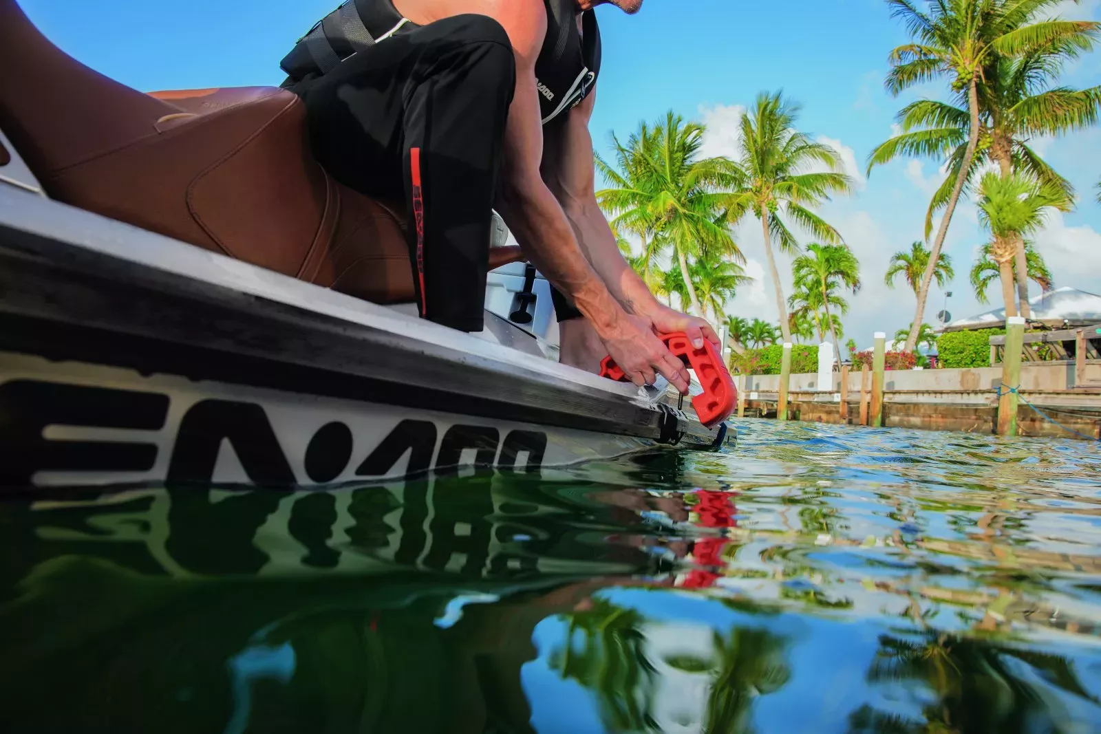 Machen Sie sicher fest mit der 4 Fuß langen, elastischen Morringleine. Das schwimmende, von Stoßdämpfern ummanteltem Nylon-Seil sichert Ihren Jet an Dock oder Anlegestelle.