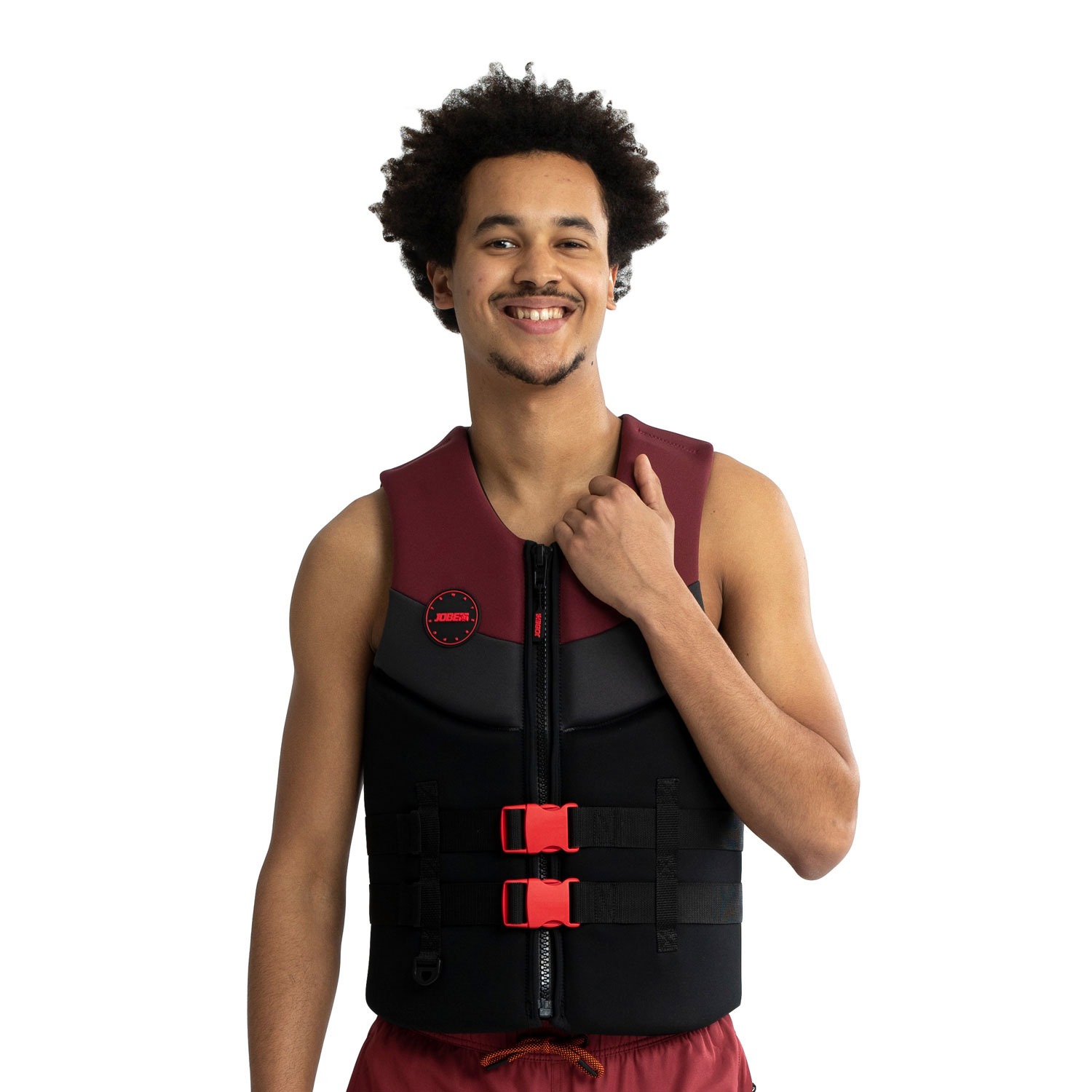 Auffallende Neopren Weste Herren in Burgunder Rot von Jobe. Die Jobe Neoprenweste für Herren besteht aus dem weichsten und angenehmsten Neopren. Diese Weste ist mit einem YKK-Frontreißverschluss, starken YKK-Schnallen und verstellbaren Gurtbändern ausgestattet. Weich-PVC-Schaumstoff setzt einen neuen Industriestandard und macht diese 50N ISO-zertifizierte Weste extrem weich, flexibel und komfortabel. Ein Quickstop Ihres Jets kann am D-Ring an der Vorderseite der Weste befestigt werden.