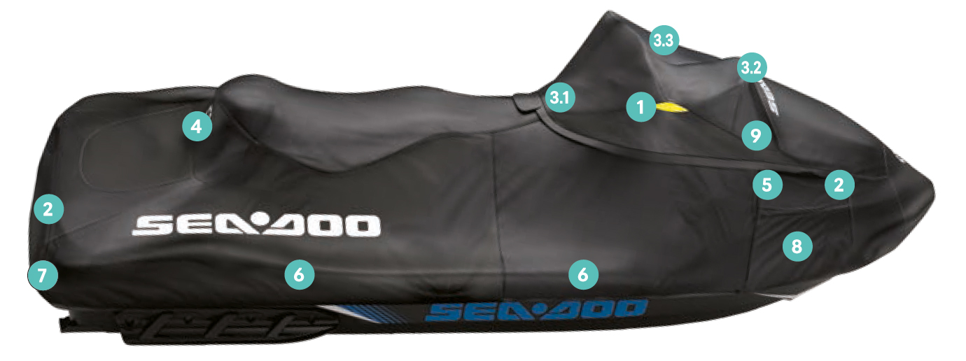 ✔Die Bereiche, die stärker beansprucht werden, sind mit einer doppelten Segeltuchschicht verstärkt. ✔ Passt perfekt zu Ihrem Wasserfahrzeug, mit oder ohne installiertem SeaDoo-Zubehör. ✔ Standard bei den GTX Limited-Modellen. |